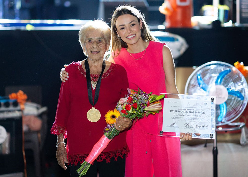 Como parte del festejo, el alcalde y su esposa entregaron la Medalla Centenario Orgullo Salinense a la señora Amada Cortez; además, se coronó diez reinas de las personas adultas mayores de las diferentes colonias del municipio.