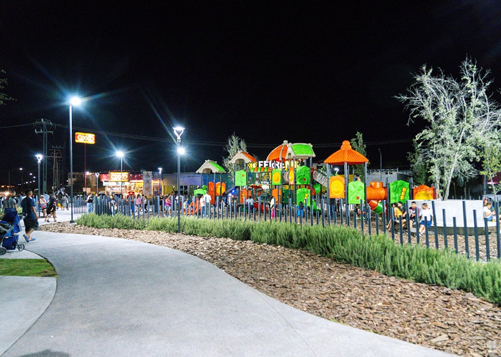 La obra de 2, 581 metros cuadrados de construcción cuenta con áreas verdes, andadores, accesos para personas con discapacidad, juegos de primer nivel, skatepark, cancha de usos múltiples, aparatos de ejercicio, así como la rehabilitación del boulevard de la colonia.