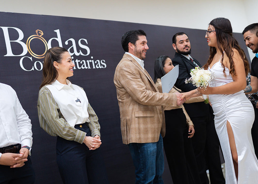 Con la presencia del alcalde Raúl Cantú de la Garza y su esposa, la presidenta honoraria del DIF Municipal Nelly Garza, como testigos de honor, se llevó a cabo la ceremonia civil, donde se destacó la importancia de fortalecer a las familias mediante la formalización legal de las relaciones.