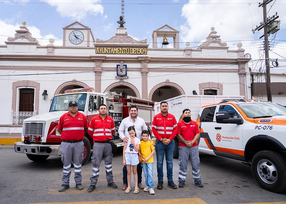 “Estamos muy contentos porque hoy entregamos una unidad más al equipo de Protección Civil y Bomberos de Salinas Victoria. Esta unidad viene a reforzar y equipar a nuestra corporación”, señaló el alcalde.