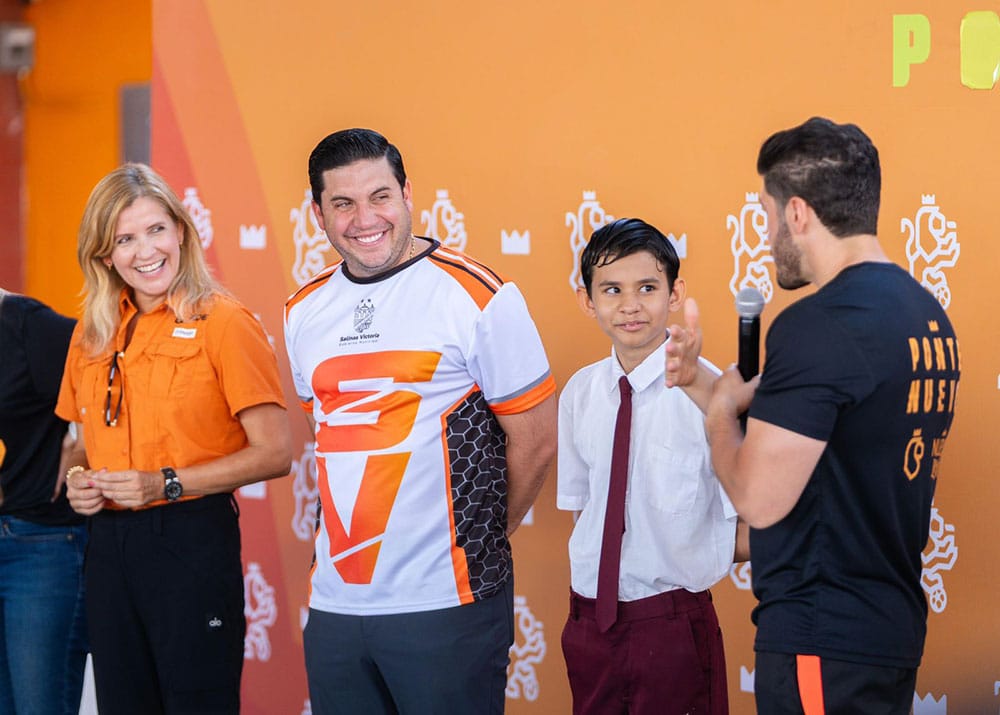 Para finalizar el evento, el alcalde Raúl Cantú de la Garza y el gobernador Samuel García encabezaron una cascarita futbolera con estudiantes de la secundaria técnica 115 “Enrique Beltrán Castillo”.