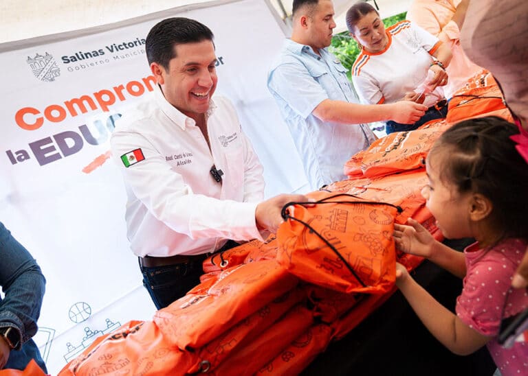 Refrendando el compromiso con la educación, el alcalde de Salinas Victoria, Raúl Cantú de la Garza, inició la entrega gratuita de kits escolares a estudiantes